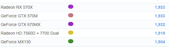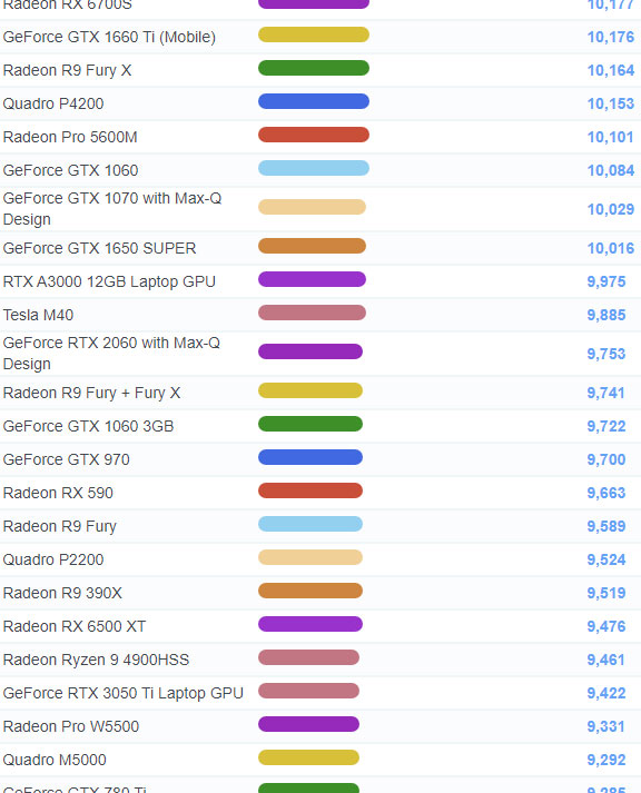 | 17 | GeForce RTX 3070 Ti Laptop GPU | 19,509 |