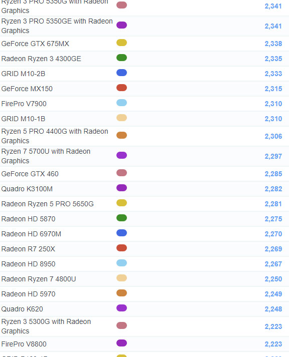 | 517 | Radeon Ryzen 5 4600G | 2,164 |