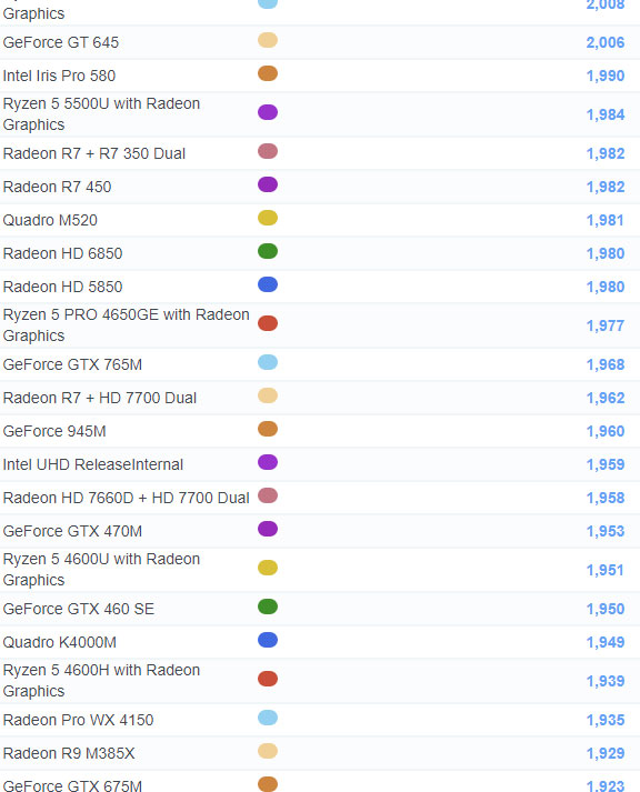 | 537 | Radeon Ryzen 7 4700U | 2,045 |