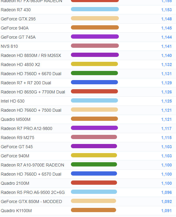 | 1135 | Radeon R7 A8-7650K | 654 |