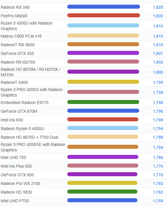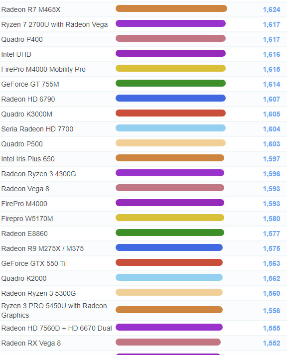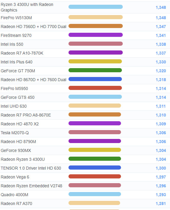 | 651 | Radeon Ryzen 3 4300G | 1,596 |