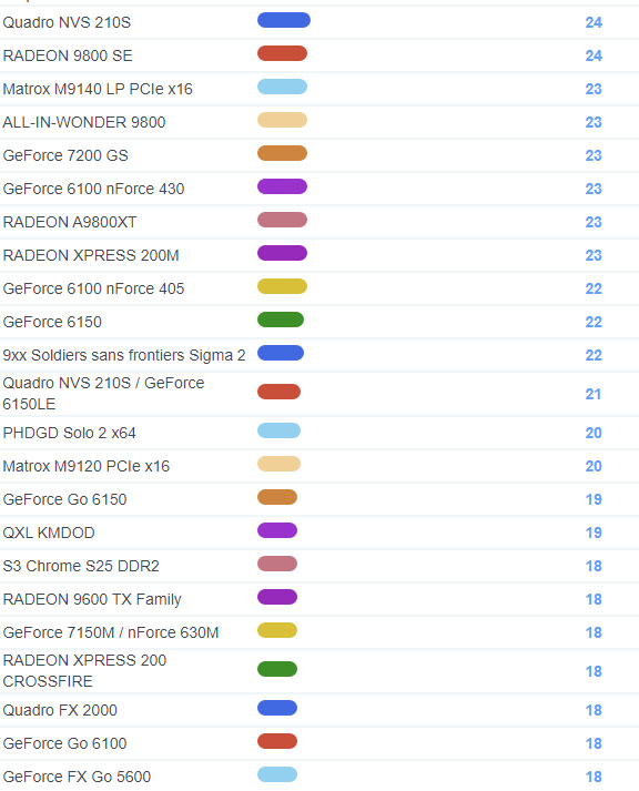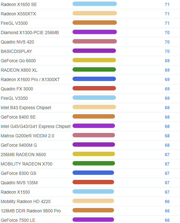 | 1771 | Radeon HD 2400 Pro | 114 |