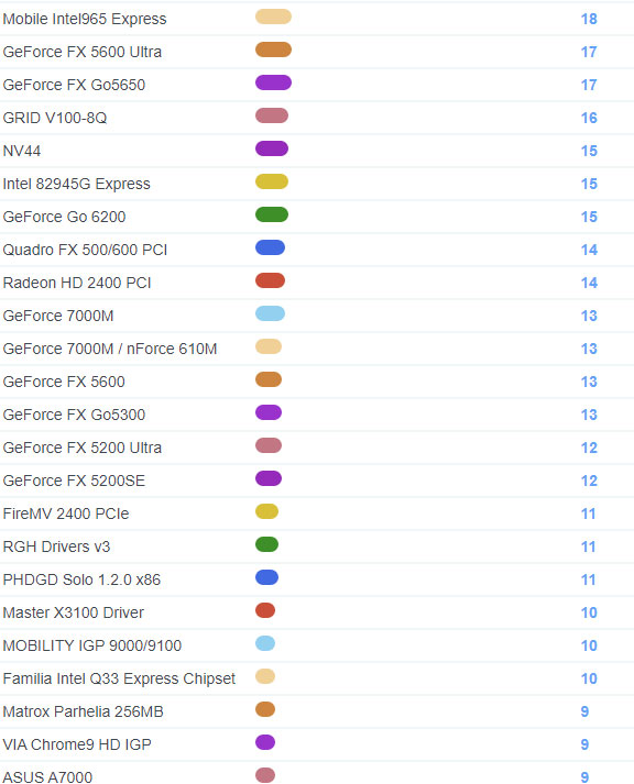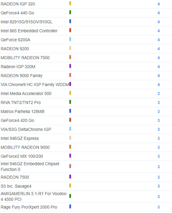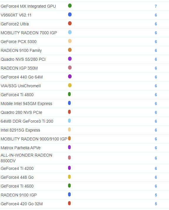 | 2233 | RIVA TNT2 Model 64/Model 64 Pro | 4 |