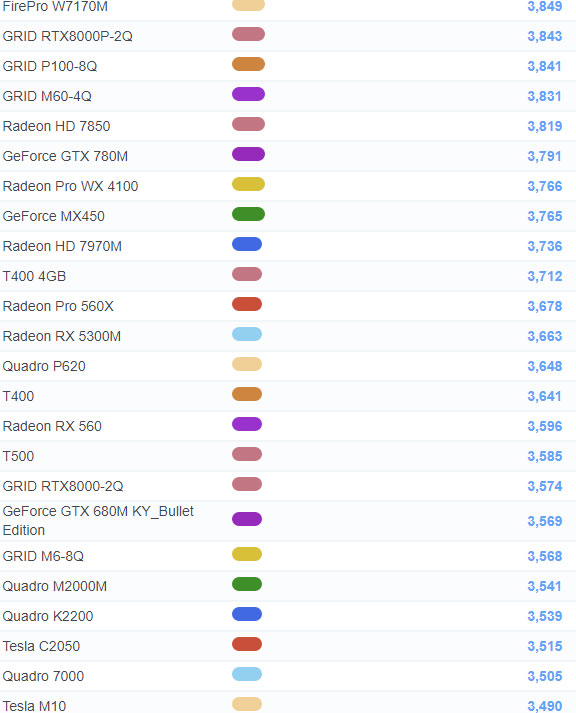 | 39 | RTX A4000 Laptop GPU | 16,544 |
