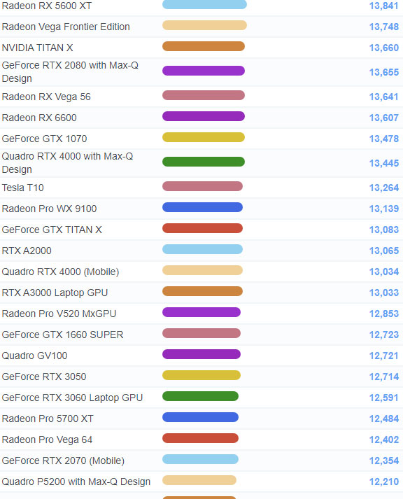 | 67 | Radeon RX 5600 XT | 13,841 |