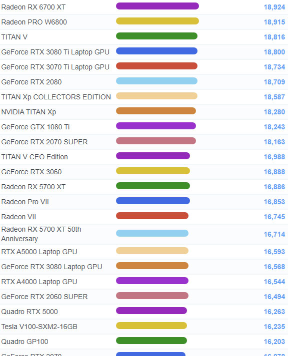 | 25 | GeForce RTX 3070 Ti Laptop GPU | 18,734 |