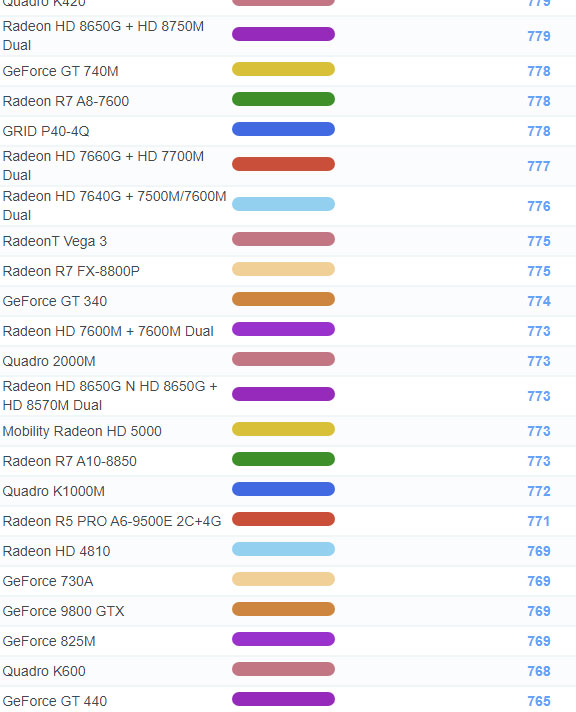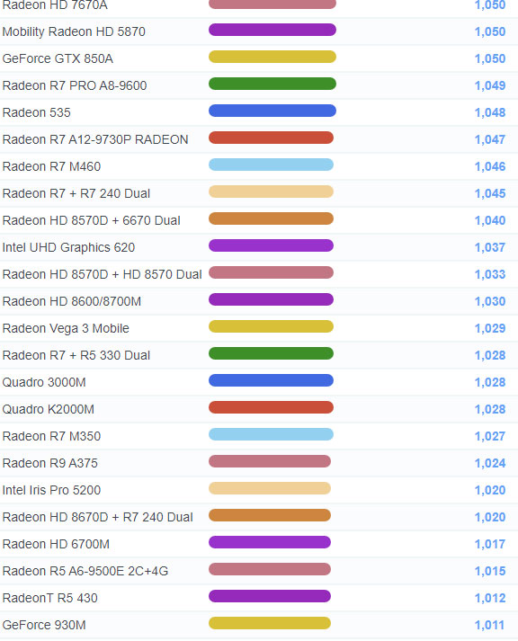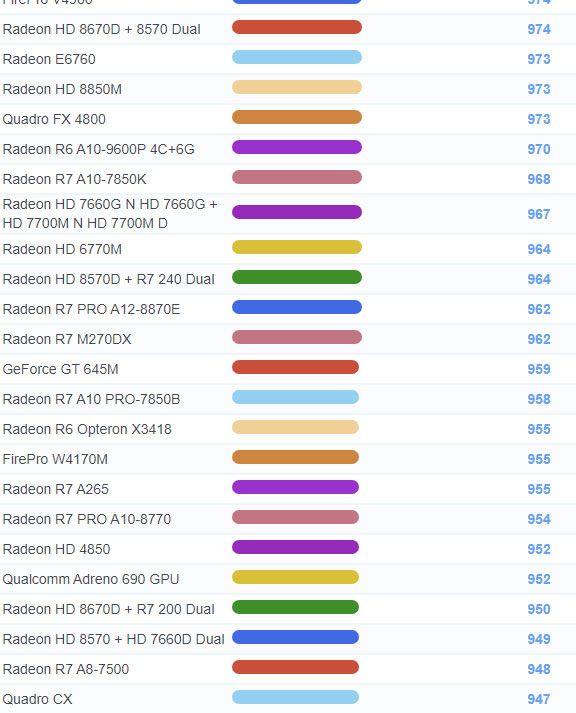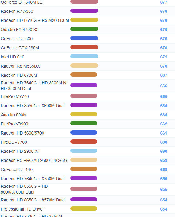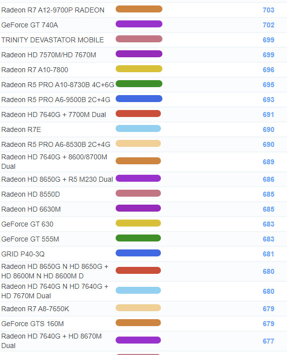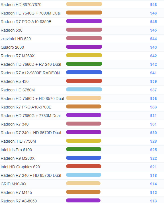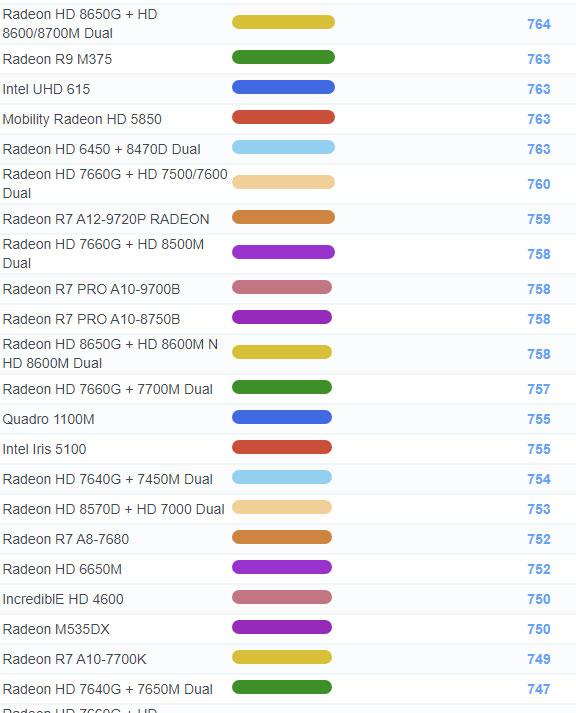 | 1115 | Radeon HD 8650G + R5 M230 Dual | 686 |