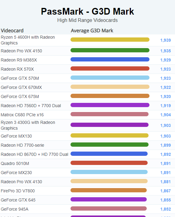 | 654 | FirePro M4000 Mobility Pro | 1,615 |