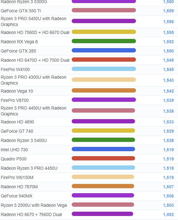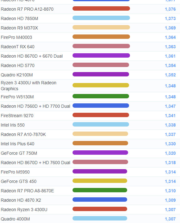 | 633 | Radeon Ryzen 5 PRO 4650U | 1,717 |