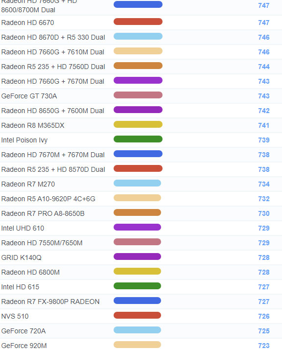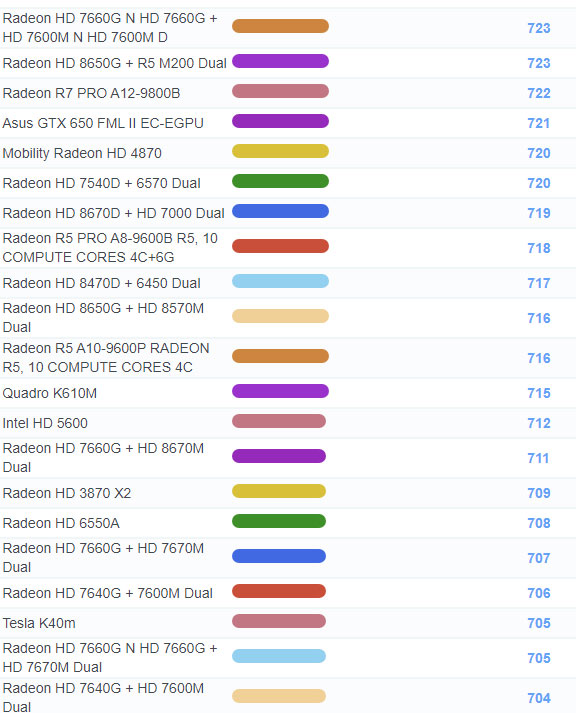 | 1172 | Radeon HD 7660D + HD 7000 Dual | 634 |