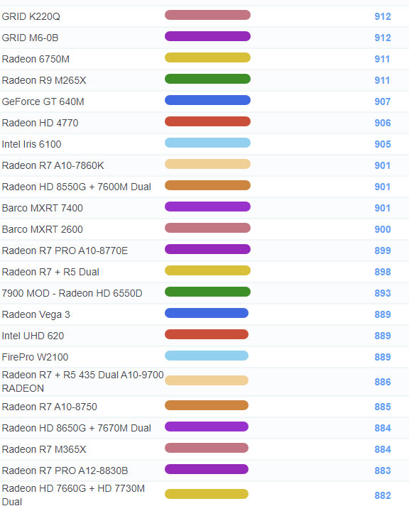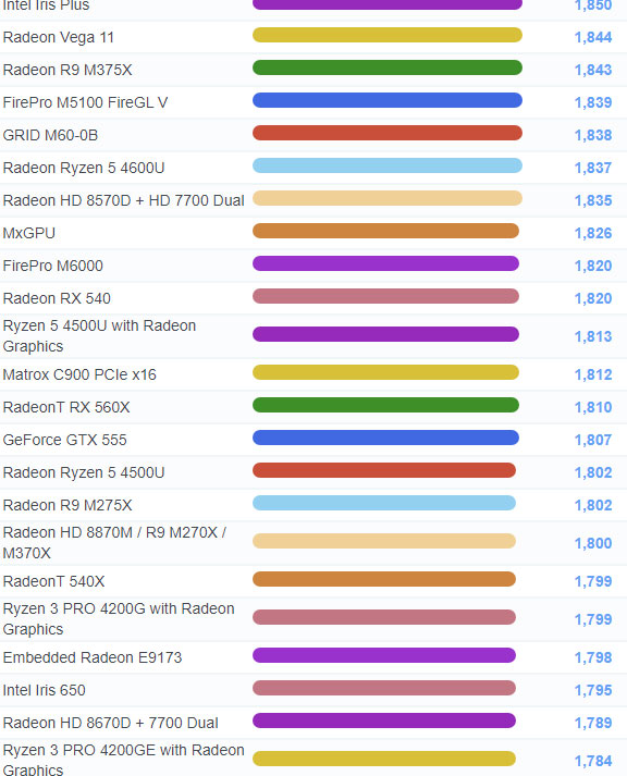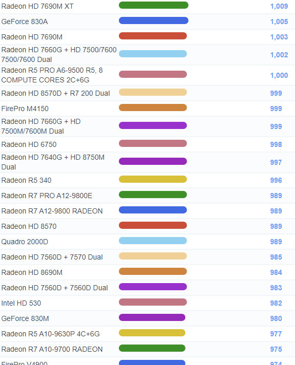 | 1198 | Radeon HD 8550G + R5 M200 Dual | 619 |
