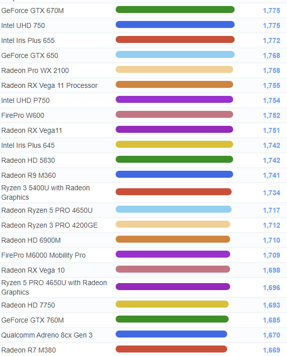 | 1648 | Mobility Radeon HD 540v | 188 |