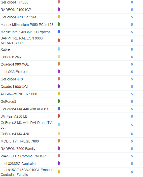 | 2245 | RIVA TNT2 Model 64/Model 64 Pro | 4 |
