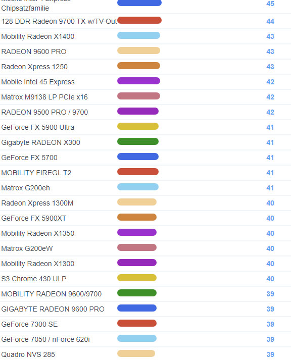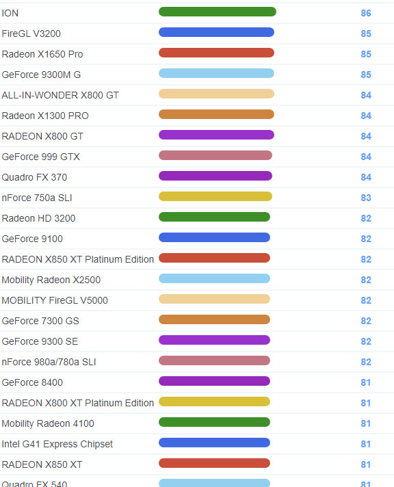 | 1783 | Radeon HD 2400 Pro | 114 |