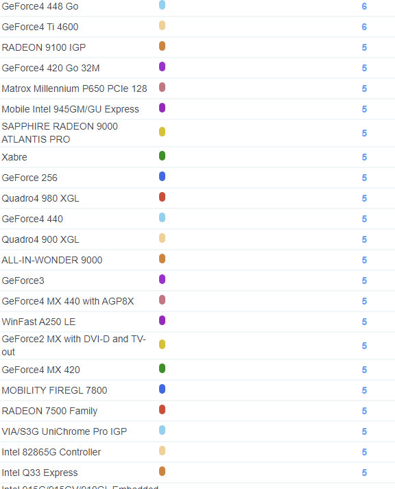| 2252 | RIVA TNT2 Model 64/Model 64 Pro | 4 |