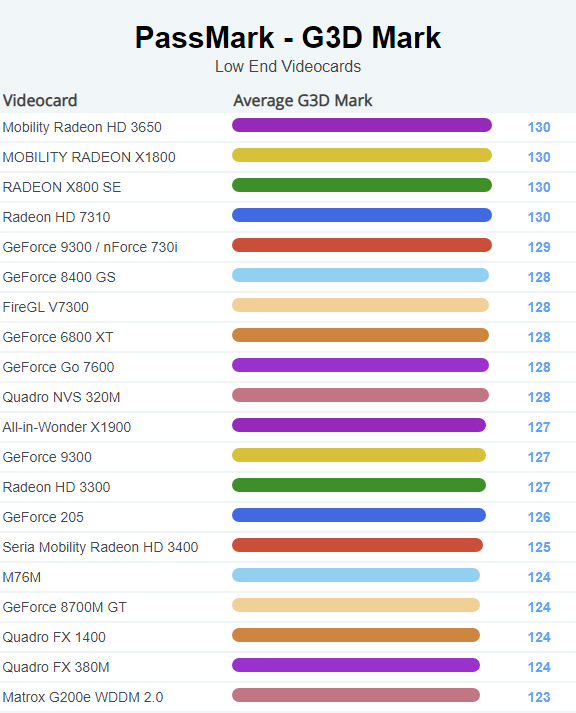 | 1738 | Mobility Radeon HD 3650 | 130 |