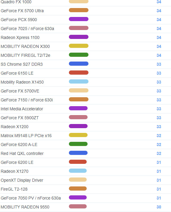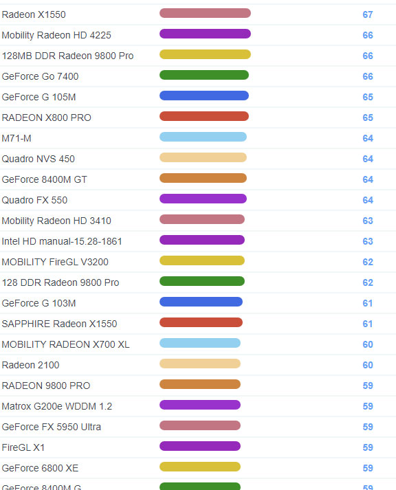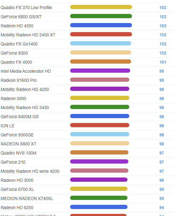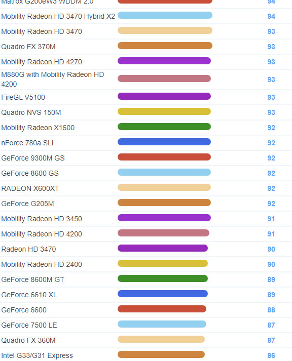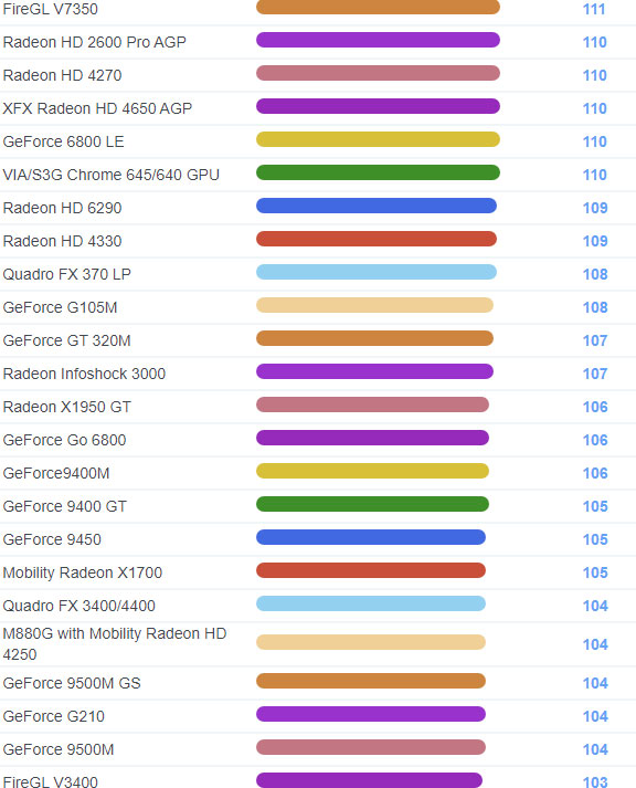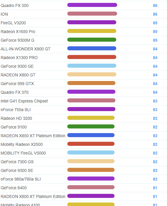 | 1790 | Radeon HD 2400 Pro | 114 |