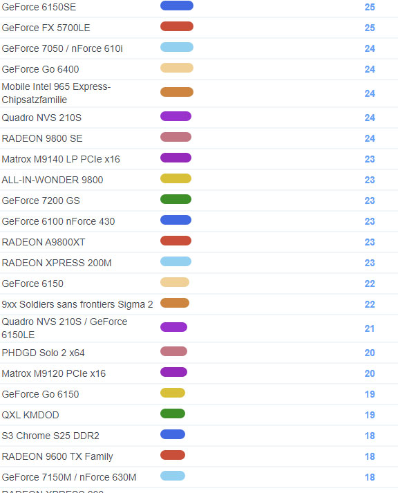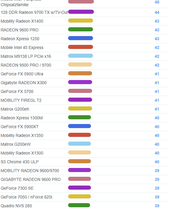 | 1780 | Radeon X1700 Targa Edition | 117 |