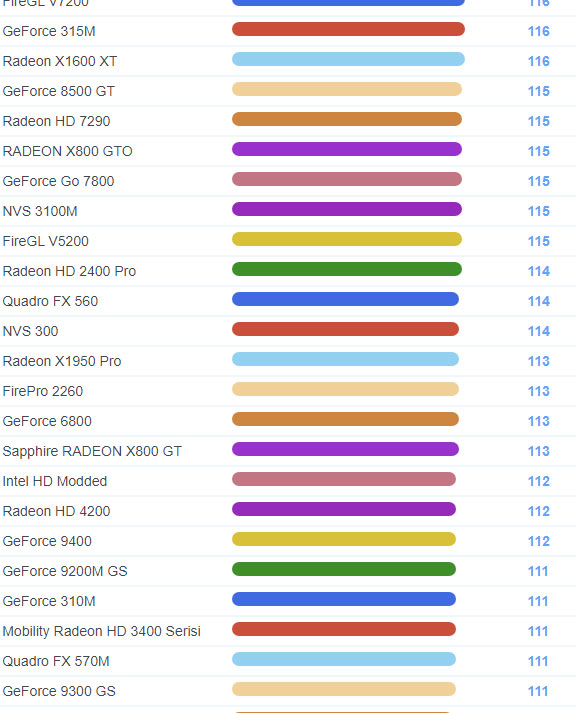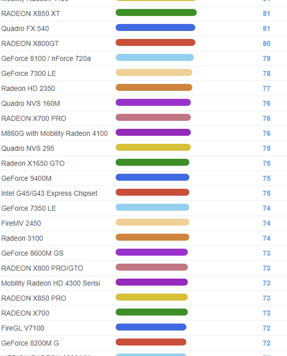 | 1802 | Mobility Radeon HD 3400 Serisi | 111 |