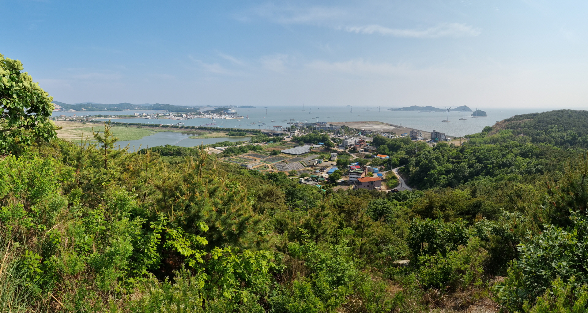▲ 정상 부근에 가면 남서쪽으로는 전곡항, 제부도, 탄도항이 보입니다.