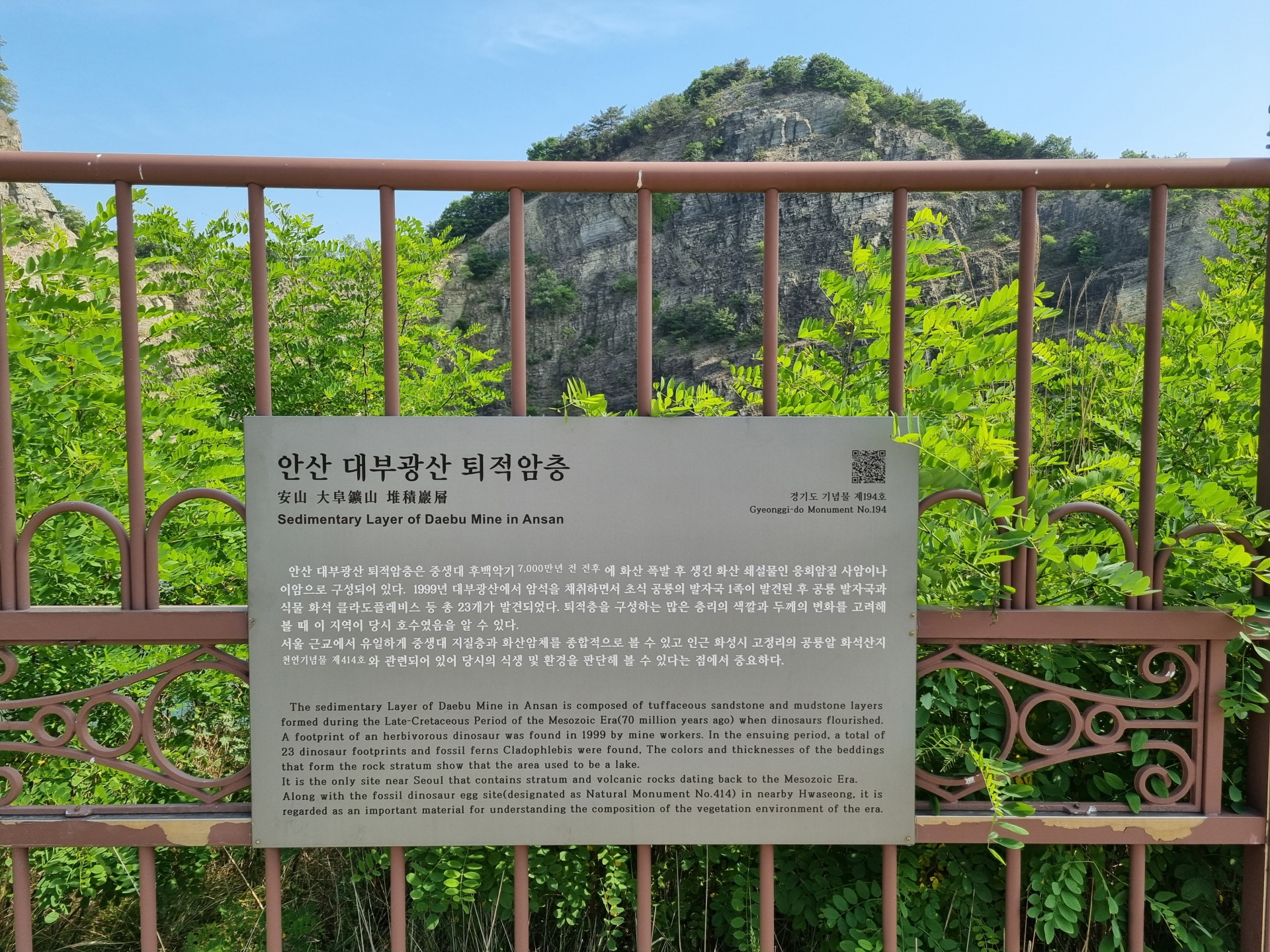 동·식물 화석이 발견된 퇴적암층이며 경기도 기념물입니다.