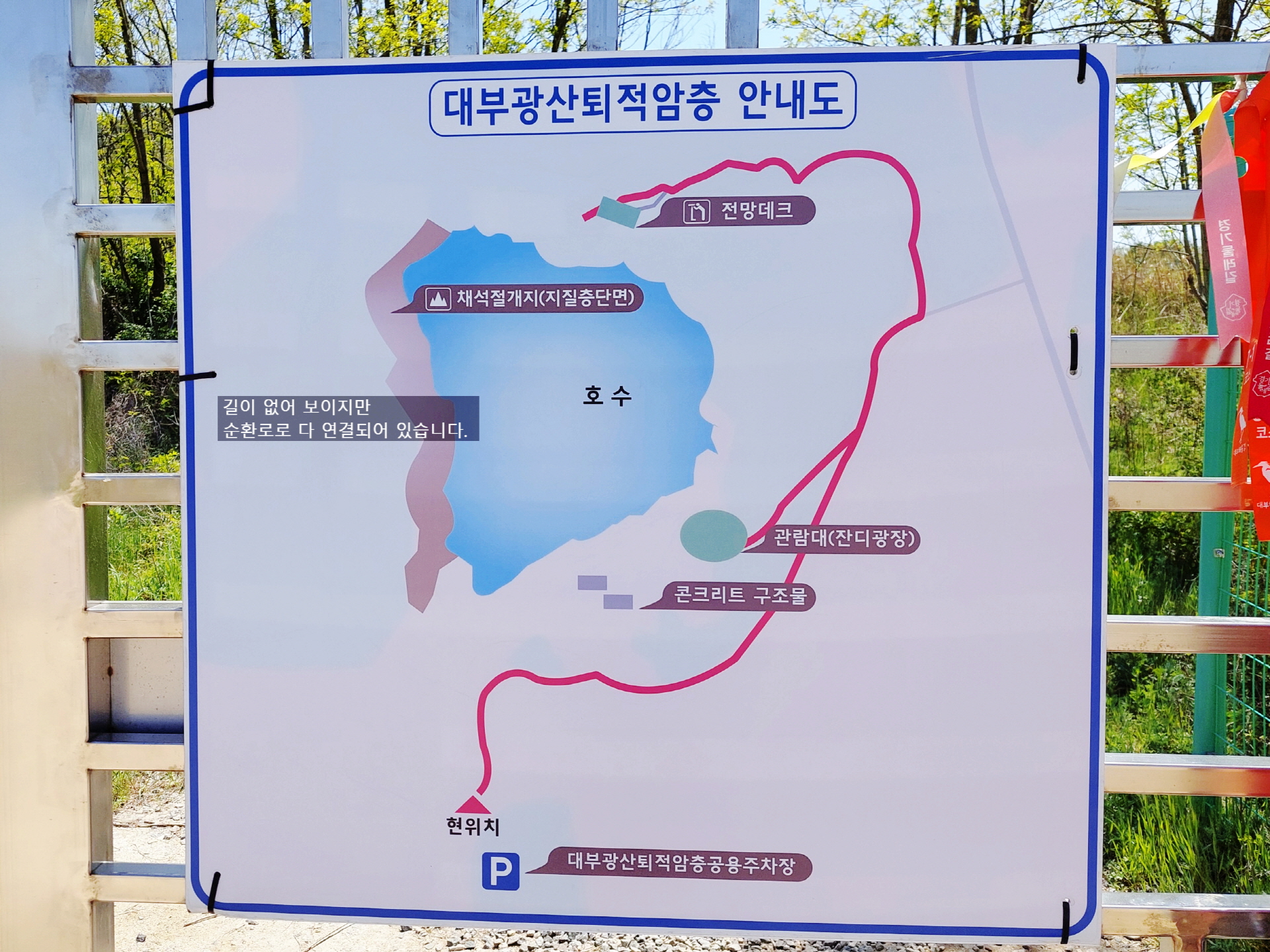 한바퀴 길이 연결되어 있어서 좌측(시계방향)으로 출발해도 한 바퀴 편안하게 돌 수 있습니다.