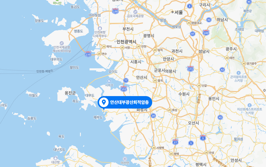 - A : 안산 대부 광산 퇴적암층 주차장