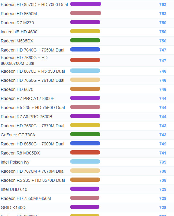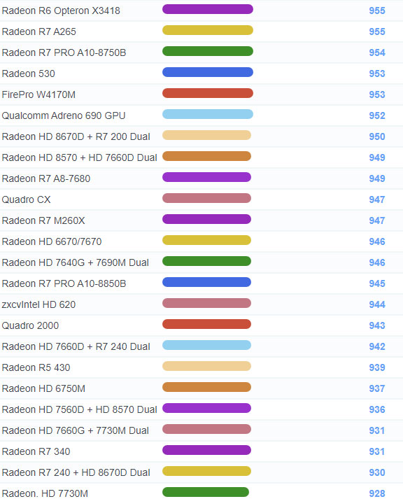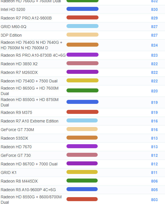 | 1110 | Radeon HD 8650G + R5 M230 Dual | 686 |