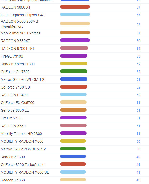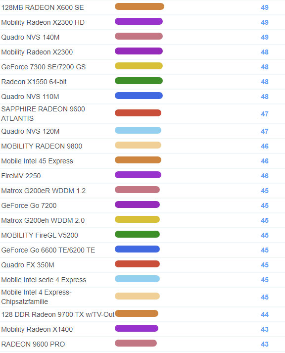 | 1746 | Radeon HD 2400 XT | 119 |