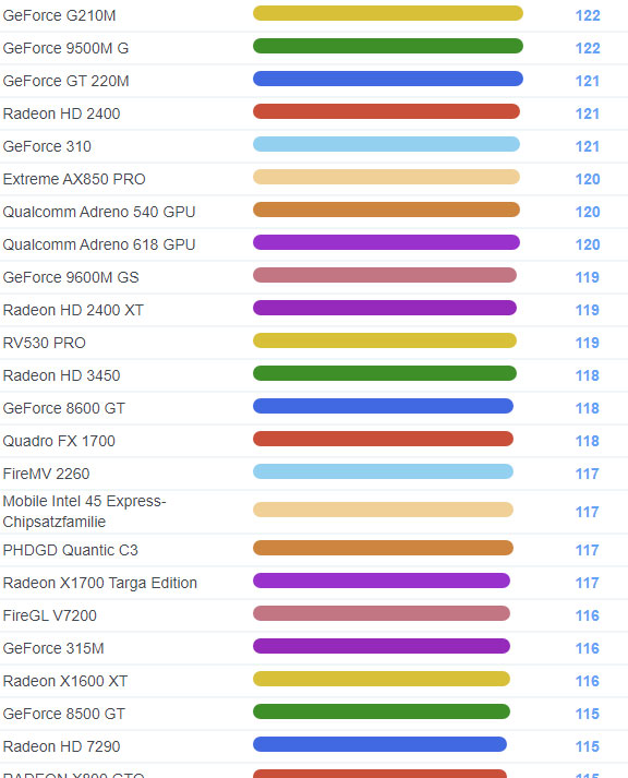 | 1749 | GeForce 8600 GT | 118 |