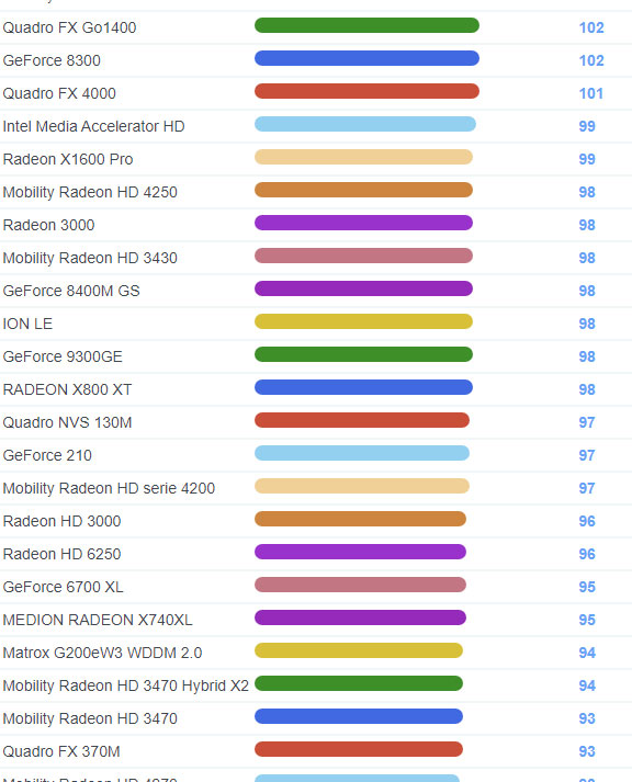 | 1730 | Quadro FX 380M | 124 |
