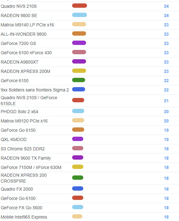 | 1748 | Radeon HD 3450 | 118 |