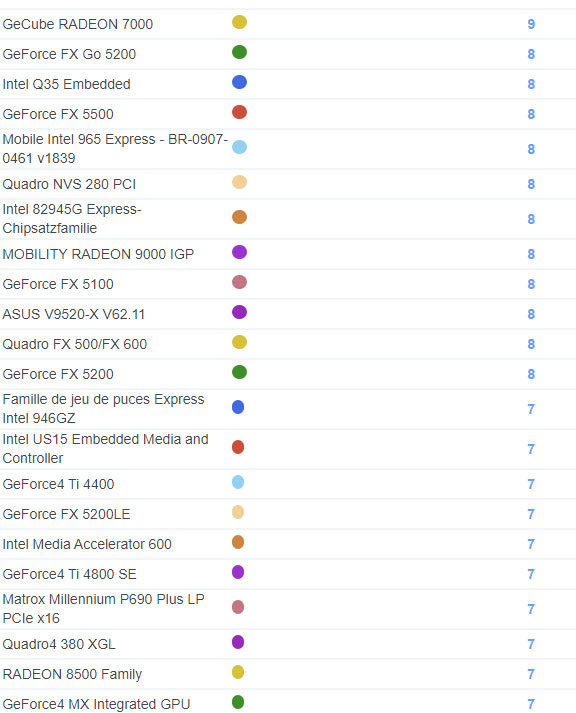 | 2194 | GeForce4 MX 420 | 5 |