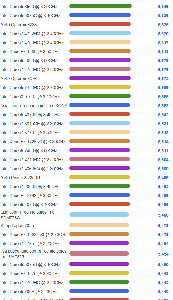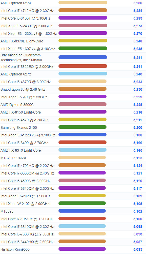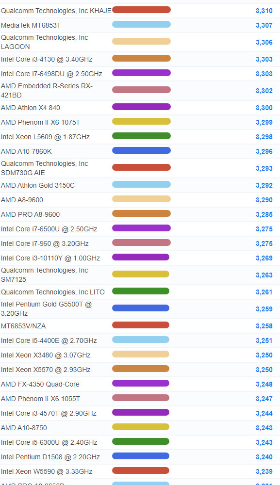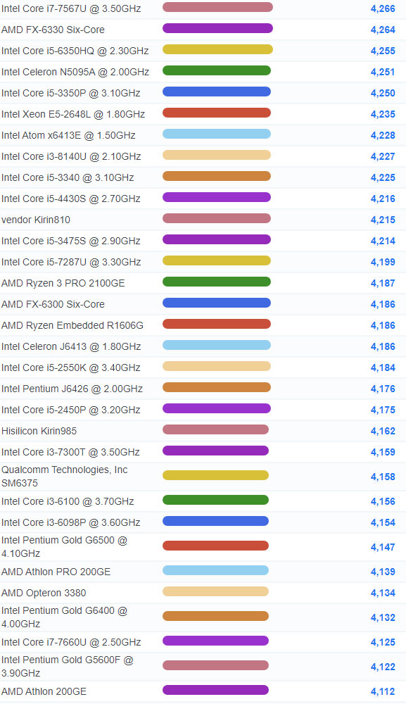 | 1958 | Intel Pentium Silver N5000 @ 1.10GHz | 2,583 |