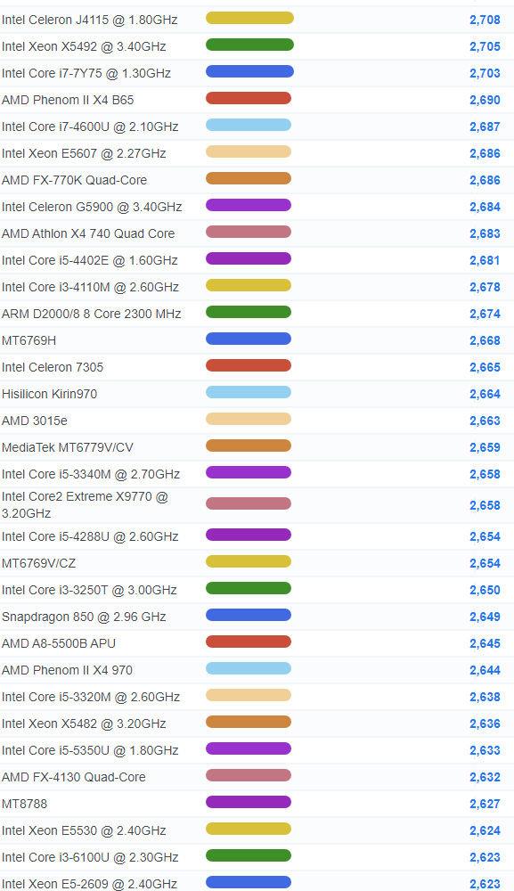 | 1969 | Intel Core i3-7020U @ 2.30GHz | 2,566 |