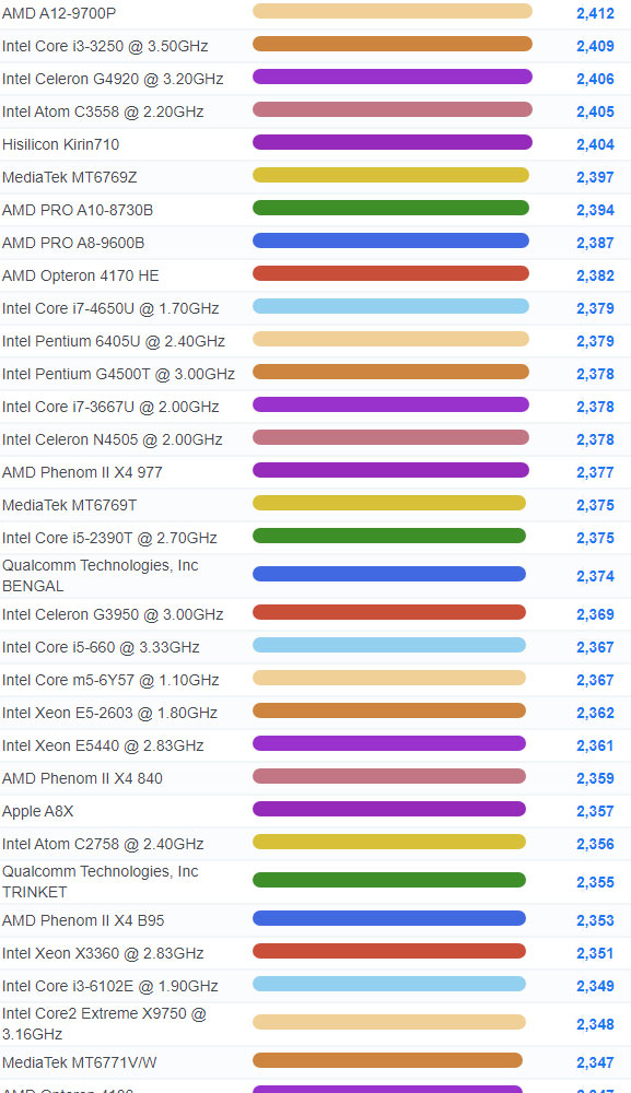| 2047 | Intel Pentium 6405U @ 2.40GHz | 2,379 |