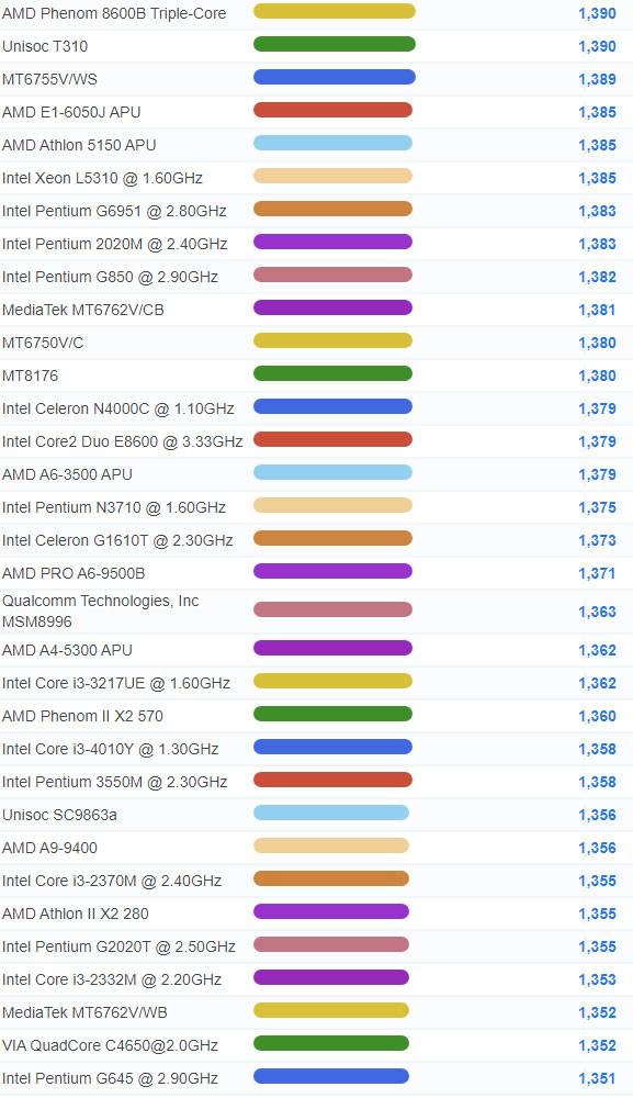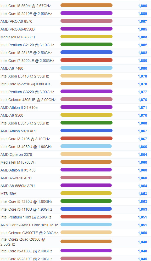 | 2958 | Intel Pentium 3558U @ 1.70GHz | 1,036 |