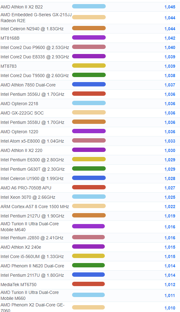 | 2968 | Intel Pentium 2127U @ 1.90GHz | 1,019 |