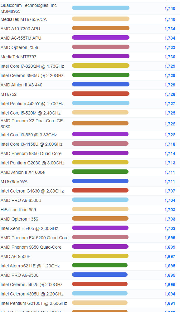 | 2998 | Intel Celeron 2981U @ 1.60GHz | 991 |