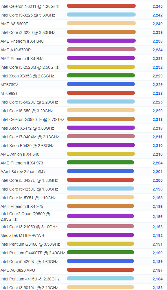 | 2027 | Intel Pentium J4205 @ 1.50GHz | 2,428 |
