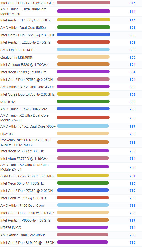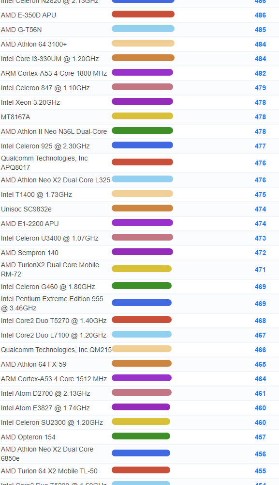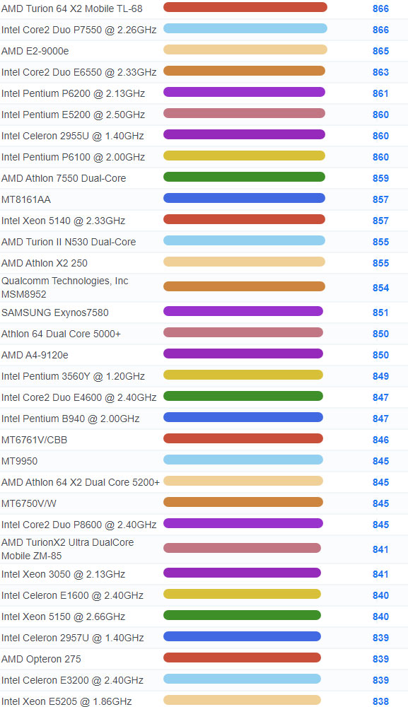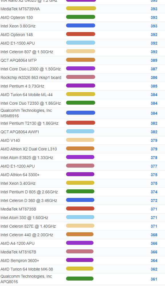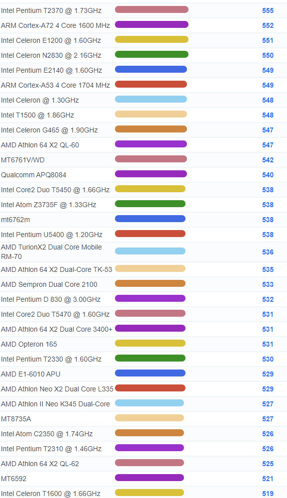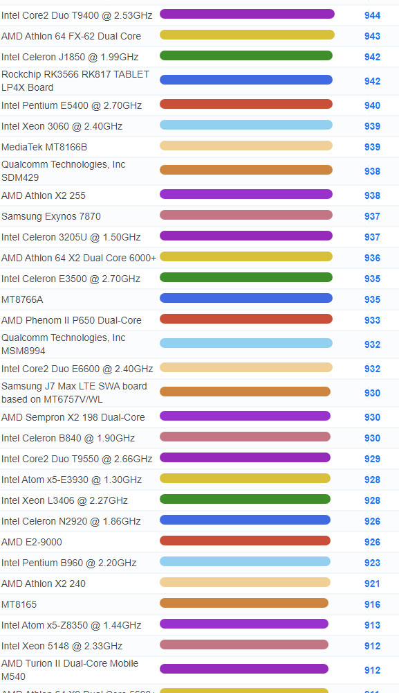 | 3071 | Intel Celeron 3205U @ 1.50GHz | 937 |