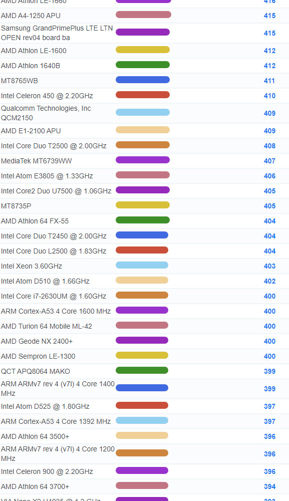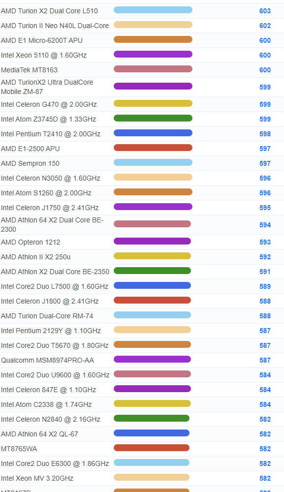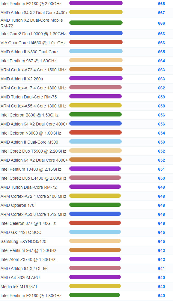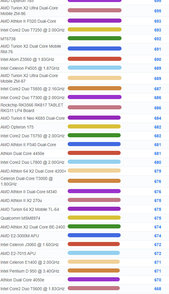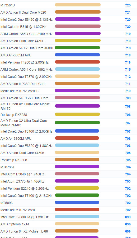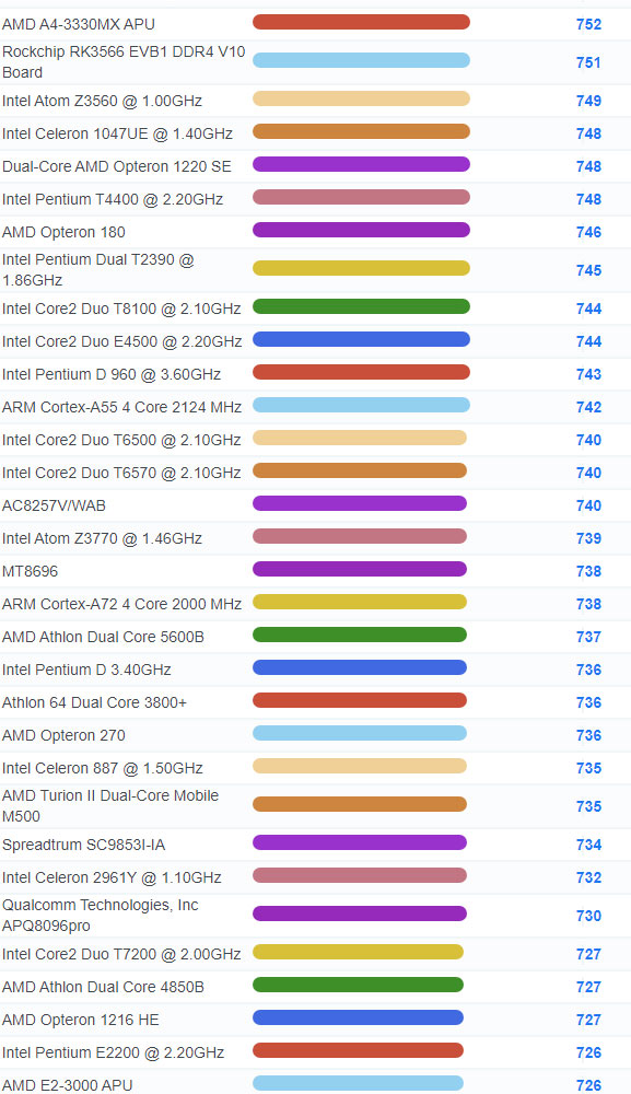 | 3071 | Intel Celeron 3205U @ 1.50GHz | 937 |
