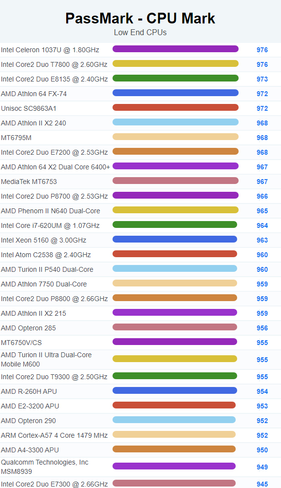 | 3031 | Intel Celeron 1037U @ 1.80GHz | 976 |