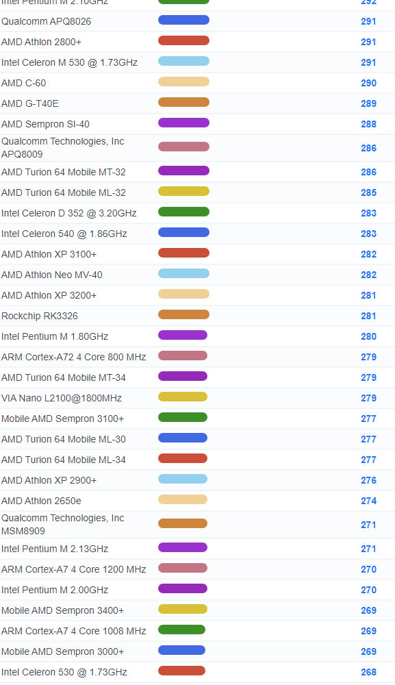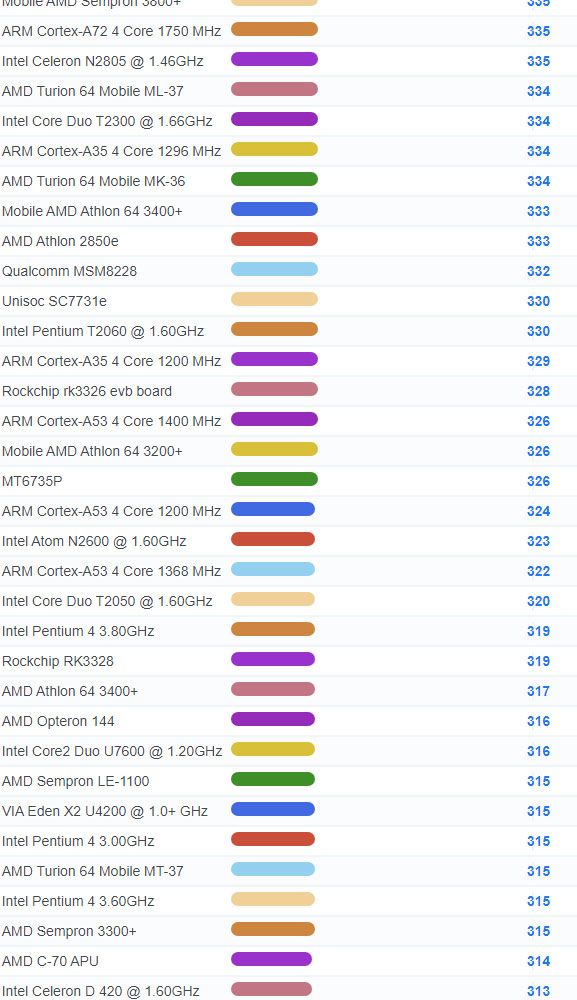 | 3975 | Intel Atom N435 @ 1.33GHz | 153 |