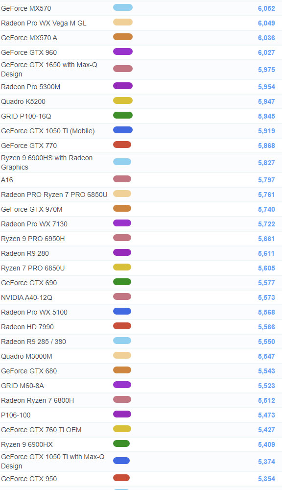 | 61 | RTX A5000 Laptop GPU | 16,132 |