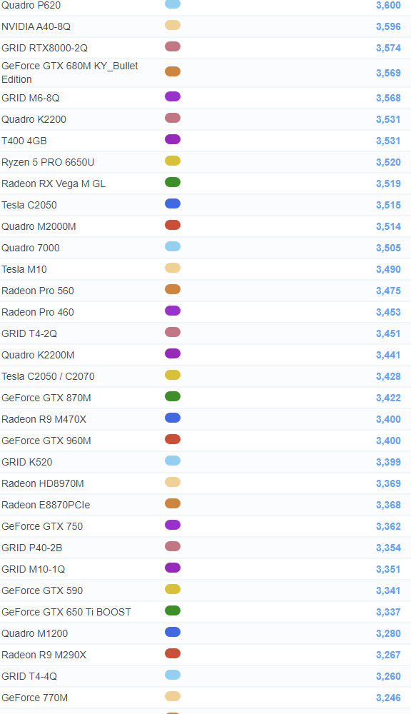 | 597 | Radeon Pro WX 4150 | 2,270 |