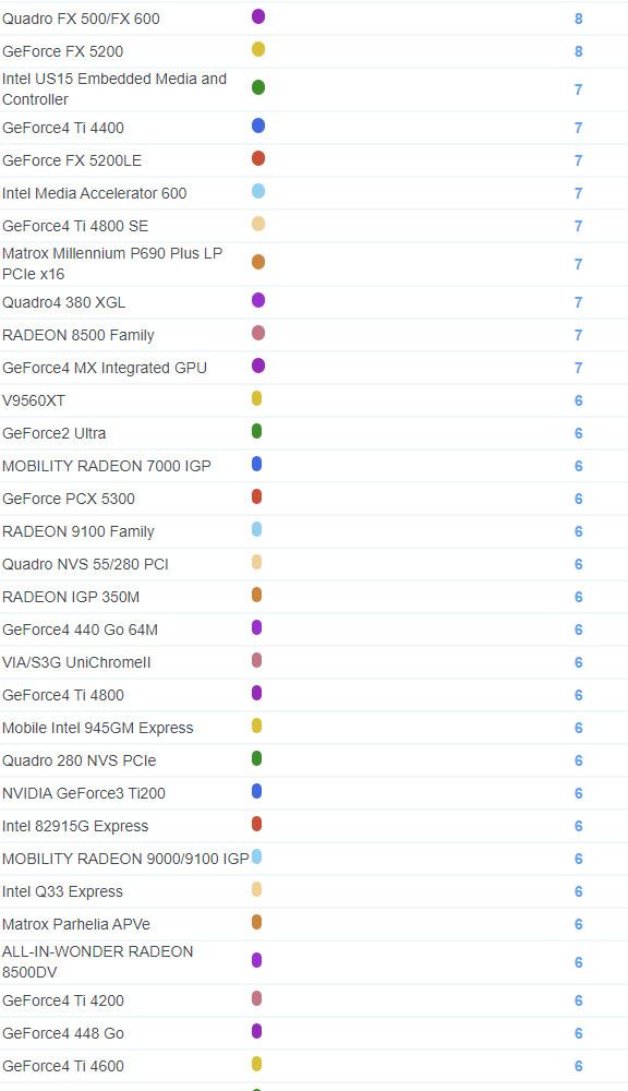 | 2381 | GeForce3 Ti 500 | 3 |