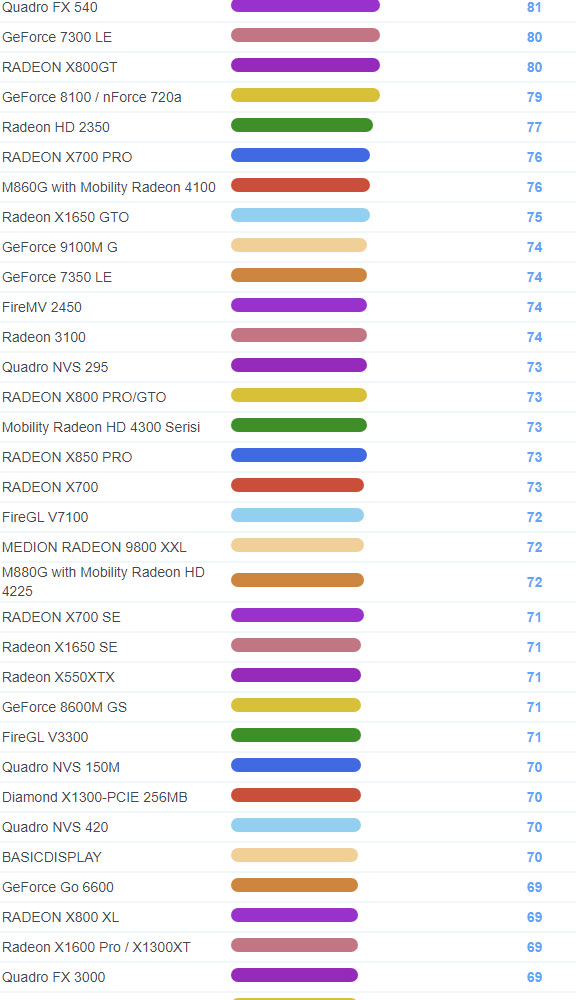 | 1868 | Radeon HD 2400 XT | 119 |