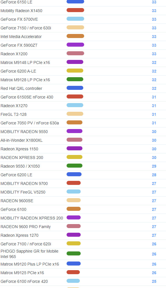 | 1847 | Radeon HD 3300 | 127 |