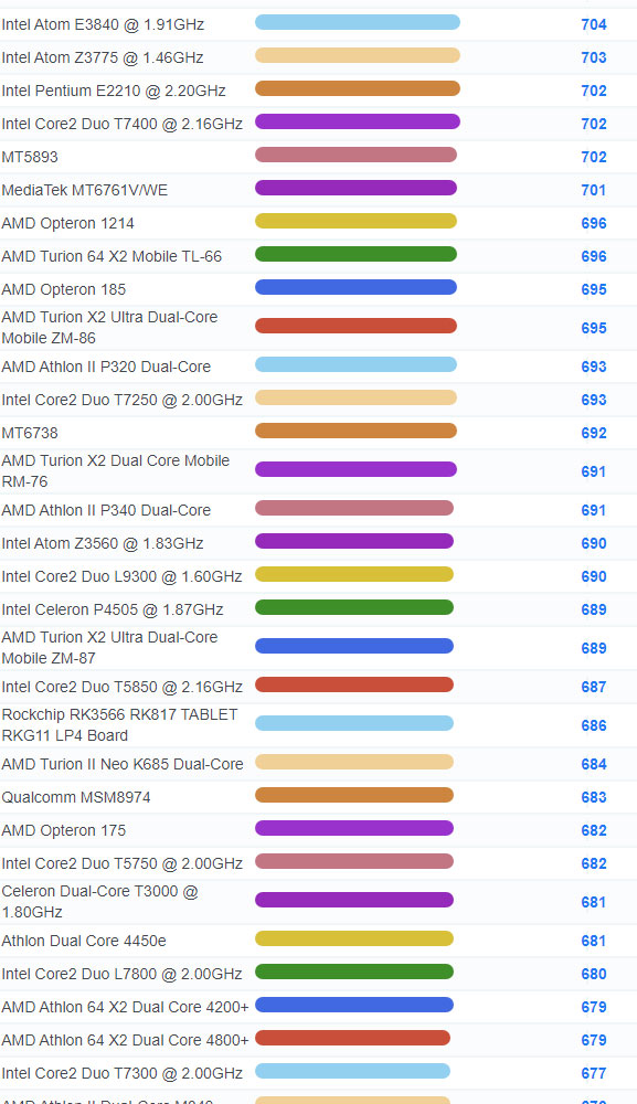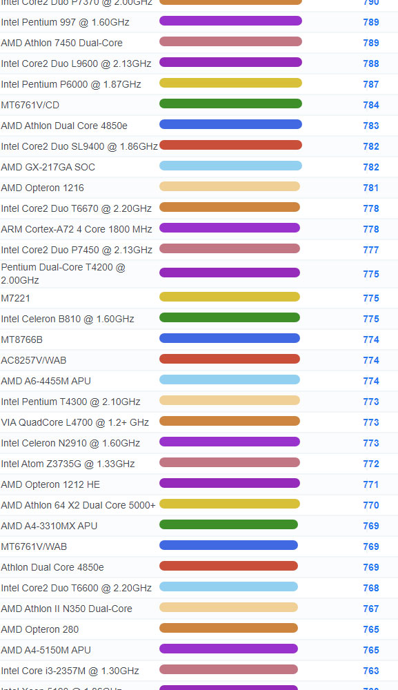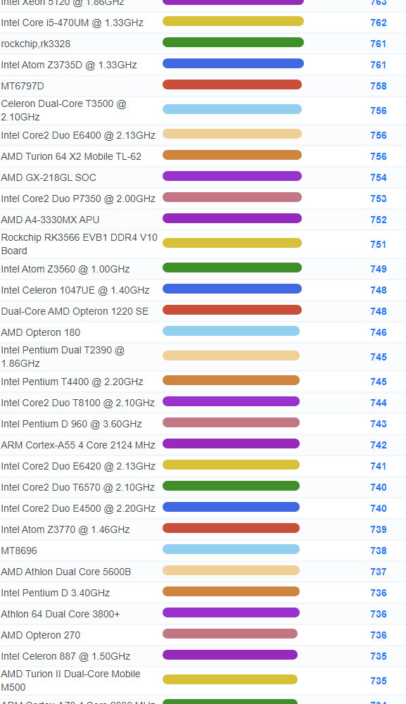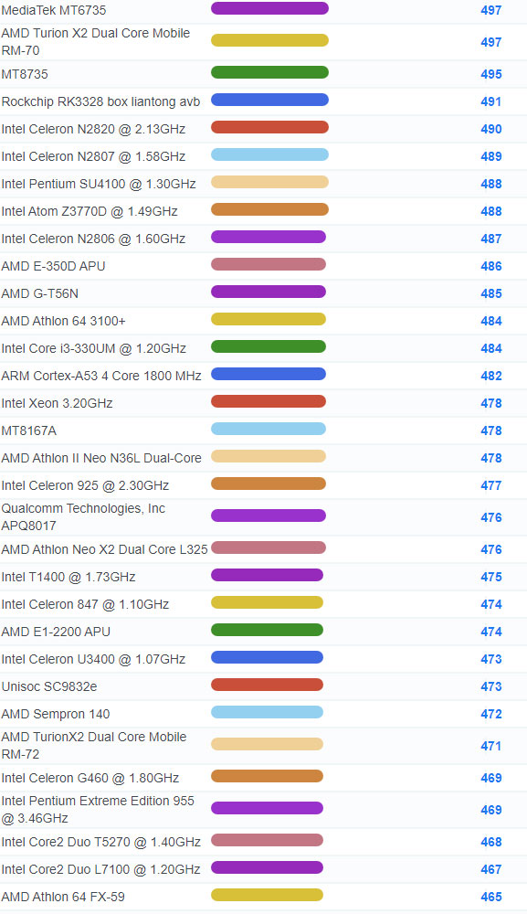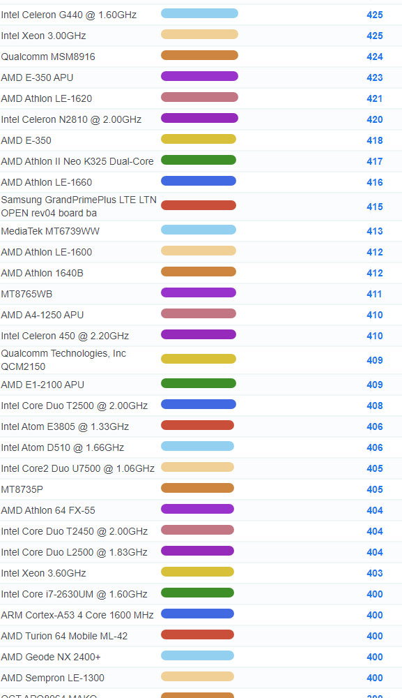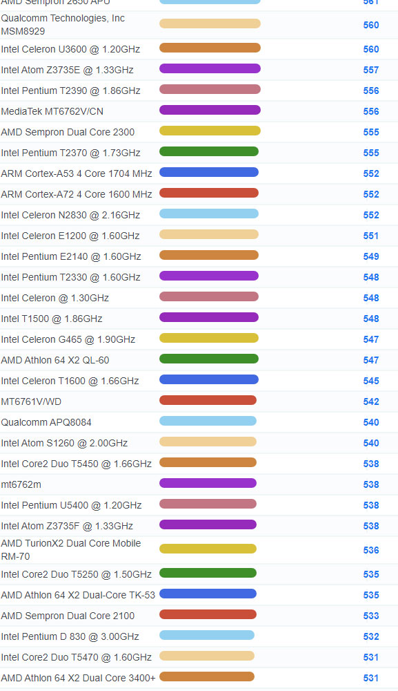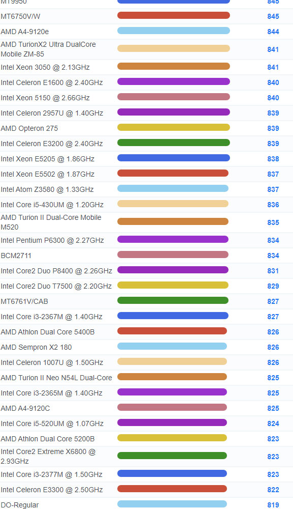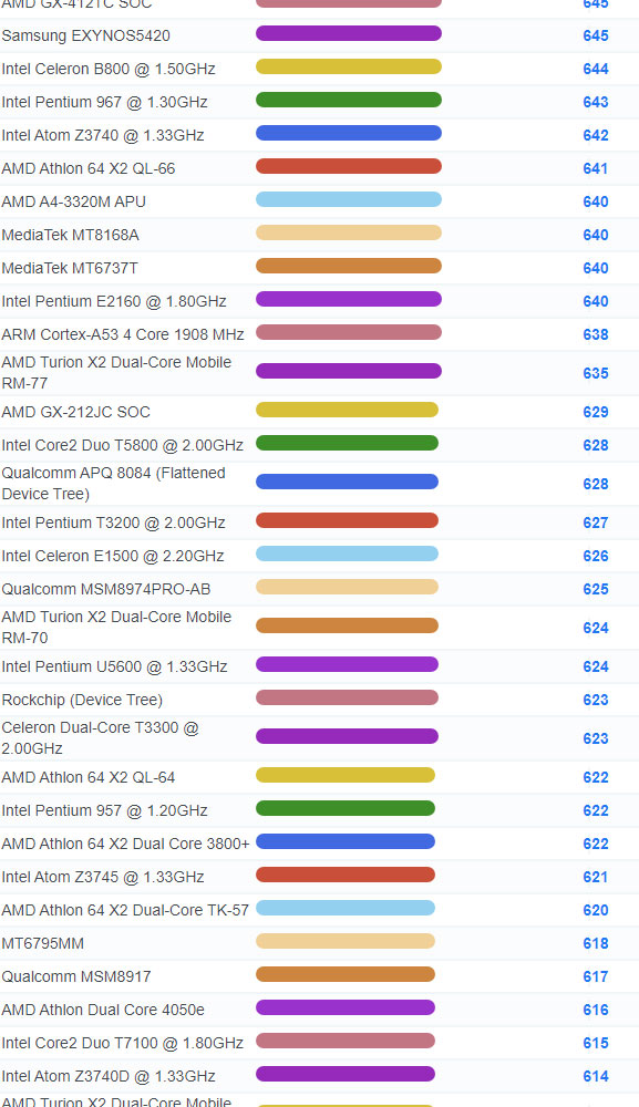 | 3107 | Intel Celeron 3205U @ 1.50GHz | 937 |